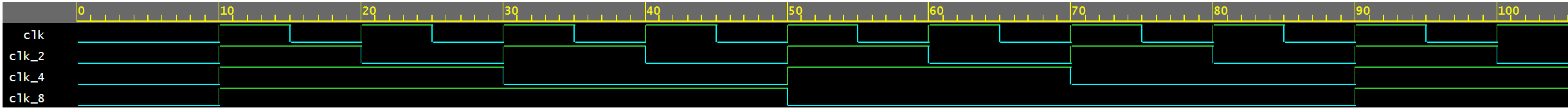 module clkdiv ( input clk, input rstn, output clk_2, output clk_4, output clk_8); wire d2, d4, d8, c2, c4, c8; assign clk_2 = c2; assign clk_4 = c4; assign clk_8 = c8; DFF FF2div ( .CP (clk), .D (d2), .Rn (rstn), .Q (c2), .Qb (d2)); DFF FF4div ( .CP (c2), .D (d4), .Rn (rstn), .Q (c4), .Qb (d4)); DFF FF8div ( .CP (c4), .D (d8), .Rn (rstn), .Q (c8), .Qb (d8)); endmodule module DFF ( input CP, input D, input Rn, output reg Q, output Qb); assign Qb = ~Q; always @(posedge CP,negedge Rn) begin if(Rn==0) begin Q <= 1'b0; end else begin Q <= D; end end endmodule